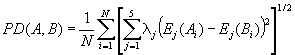 of N residues, is computed with the property distance function PD: